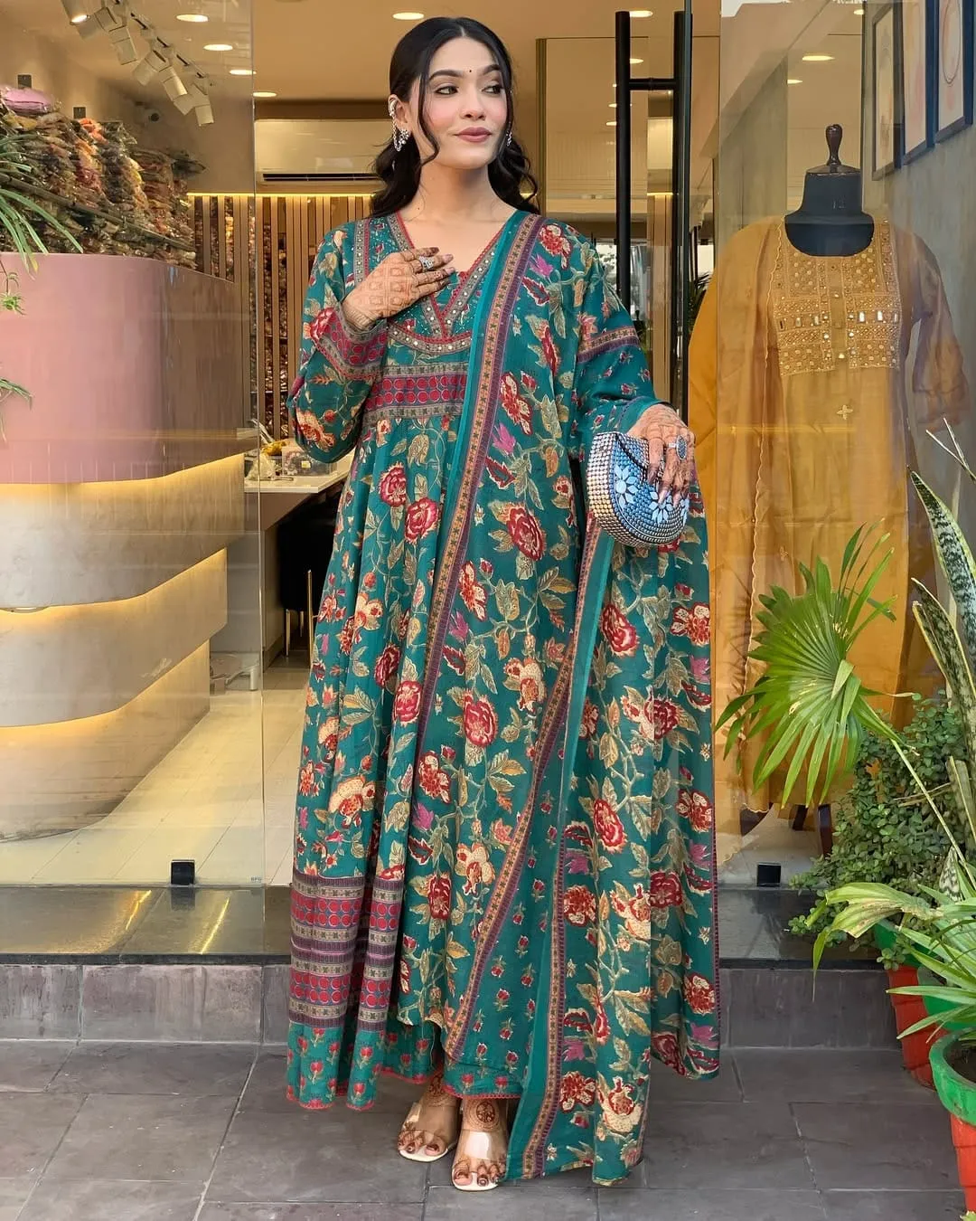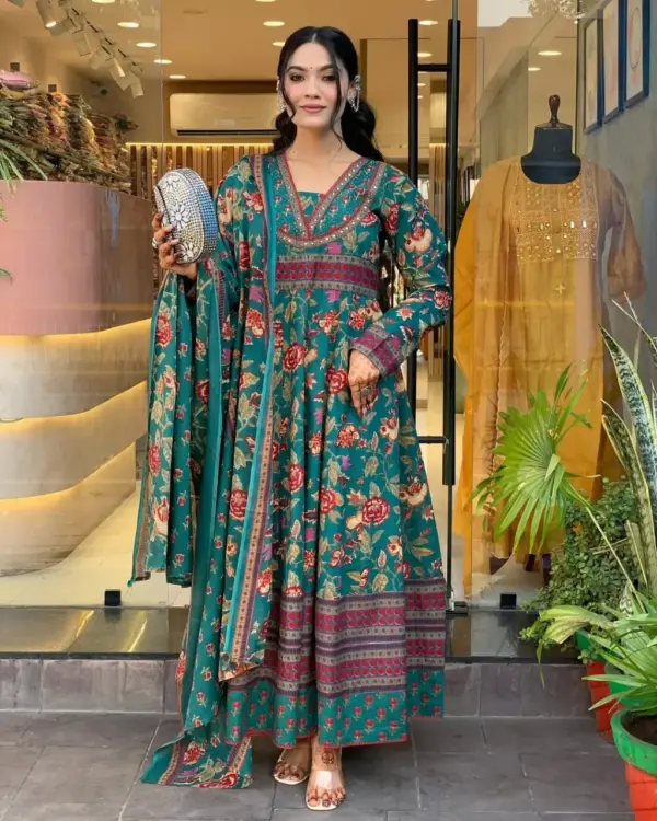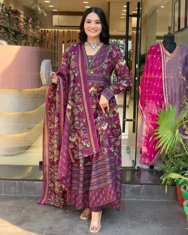 🎨 ডিজাইন: স্কিন প্রিন্ট করা আনারকলি স্টাইল — একদম রাজকীয় লুক